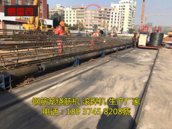 滚焊机特点: ◆加工速度快: 正常情况下备料及滚焊部分5-7人一班, 896563447 分二班作业,10个人一天就可以加工出20多个12米长成品的笼子(备料、滚焊、加强筋安装、探测管安装、导向垫块安装等),对于高铁施工中1米桩的笼子曾经有日产75节9米的笼子(675米/天)的生产记录,工作效率非常高。◆加工质量稳定可靠:由于采用的是机械化作业,主筋、缠绕筋的间距均匀,钢筋笼直径一致,产品质量完全达到规范要求。在实际中手工生产钢筋笼时工程监理几乎每天都到加工现场进行检查,而使用机械加工后,监理对机械化加工的钢筋笼基本实行了“免检”。◆箍筋不需搭接,较之手工作业节省材料1%,降低了施工成本。◆由于主筋在其圆周上分布均匀,多个钢筋笼搭接时很方便,节省了吊装时间。机械化制作钢筋笼要点:1、人员配置: 正常情况下,5人一班,即可作业。具体分配如下:备料、上料:2人滚焊操作:1人内箍圈(加强箍圈)等安装:2人具体人数要根据钢筋笼的规格型号进行增减。2、加工成本:电费:15-20元/吨(不使用对焊机时,约15-16元/吨,如果使用对焊机,成本约增加5-7元左右)焊丝、焊条及CO2气体:约20-30元/吨3、模板定做根据工程不同,钢筋笼的尺寸会有变化(如主筋根数或直径等),通过更换模板及导管, 可适应不同的工程需要。灵活方便。模板可根据不同工程钢筋笼的设计进行更换。需要制作新的模板时,可采取如下方法:A、提供钢筋笼图纸,委托工厂制作B、提供钢筋笼图纸,由工厂依钢筋笼图纸提供模板图纸,客户自已找地方制作4、钢筋笼的搭接问题对于钢筋笼的搭接,可采取先搭接主筋再做笼子,或先做成笼子后再进行二节笼子的 搭接。先搭接主筋再做笼子:把9米的钢筋通过对焊或套筒连接成9米~29米的主筋,再用滚焊机加工成较长的笼子。先做成笼子后搭接:先用设备做成9米或12米的标准节,再通过搭接焊或帮条焊的方式,把二节短笼子搭接成为较长的笼子。6、内加强箍圈安装问题对于内加强箍圈,我们提供和设备相配套的弯弧机,专门加工内加强箍圈,该设备加工的内圈和人工做笼子不同的是箍圈未封口