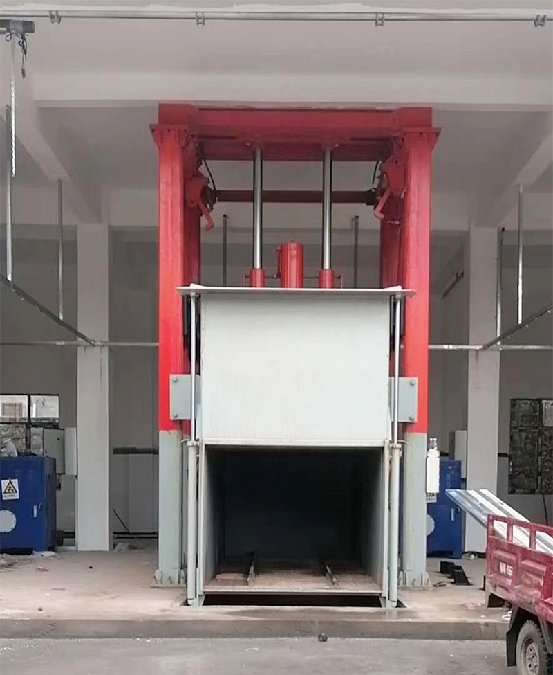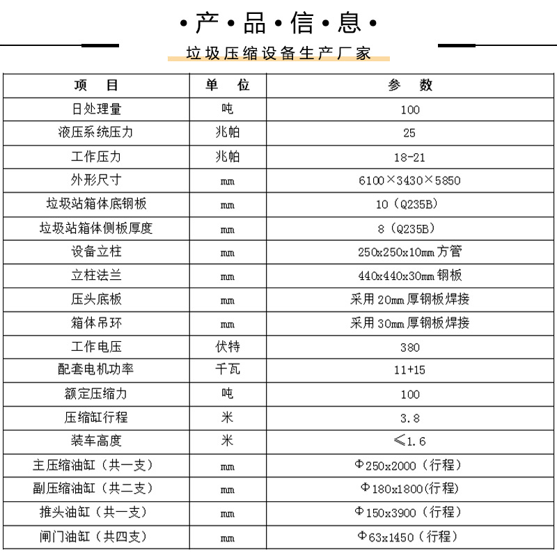 2、垂直式垃圾压缩机将倾倒在箱体压缩仓的垃圾进行压缩处理;