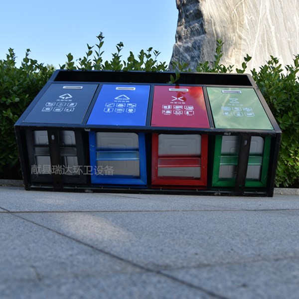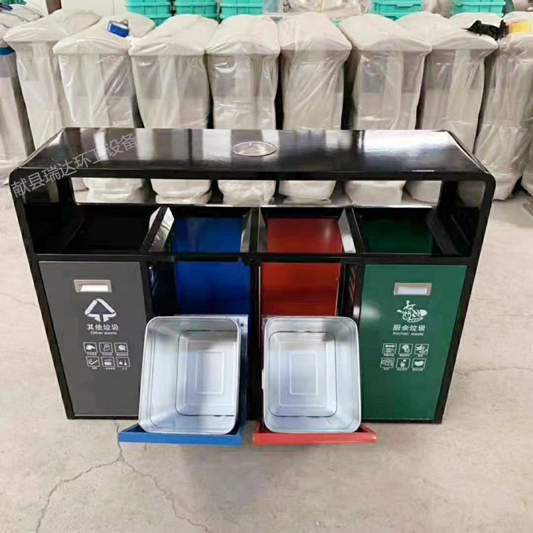 a设垃圾分类收集其他垃圾和可回收物和易腐垃圾和有害垃圾内胆箱各一只,采用优质镀锌板材质,具有防腐、阻燃的特点,光滑表面易于倾倒垃圾,外侧四面自带拉手。