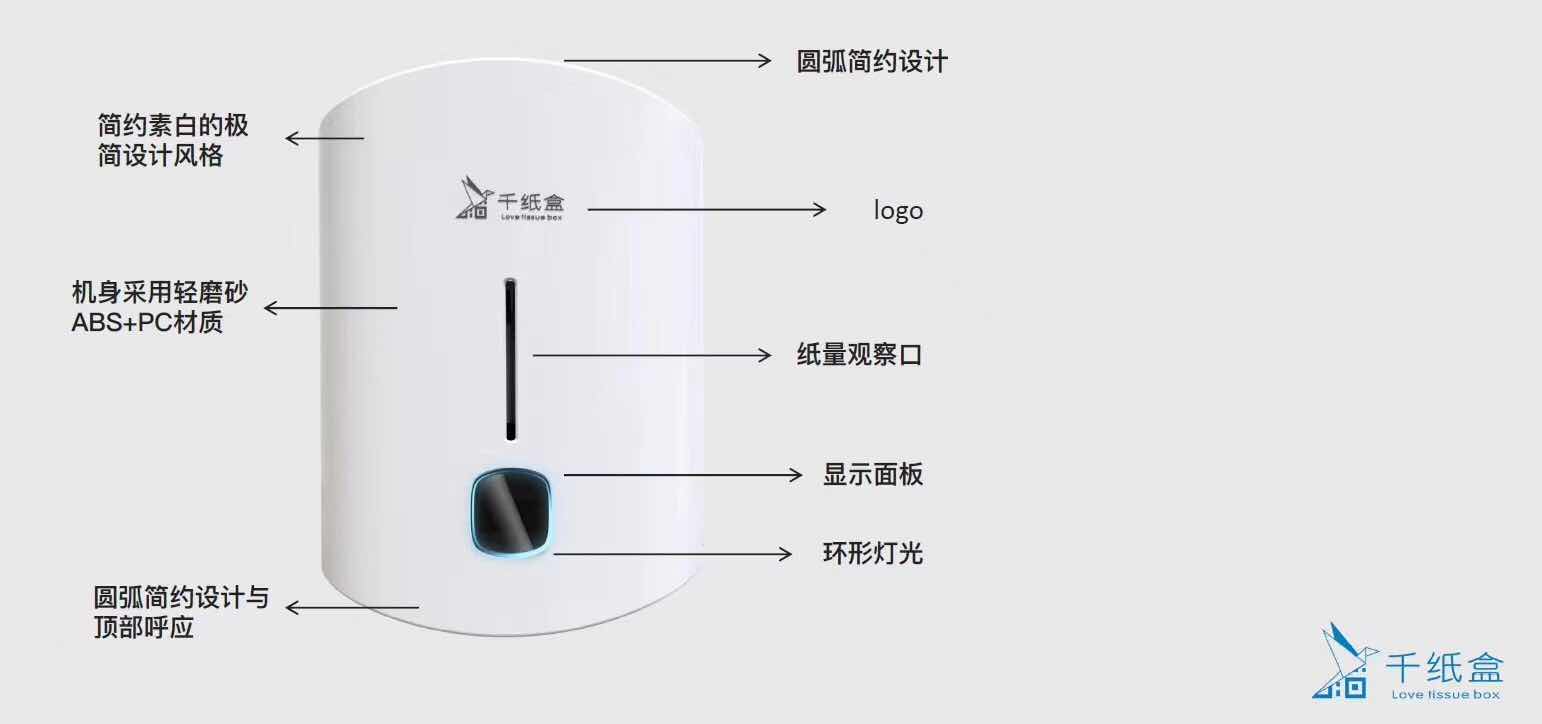 旗下产品“ 千纸盒”是基于环保、便民为理念的免费智能供纸产品。我们将人工智能、移动互联良好的应用于实际,同时兼顾平台粉丝与政府公益宣传相结合的方式为用户提供免费用纸服务。“千纸盒”单次出纸长度控制在80公分左右,旨在引导培养人们养成节约用纸的良好习惯。