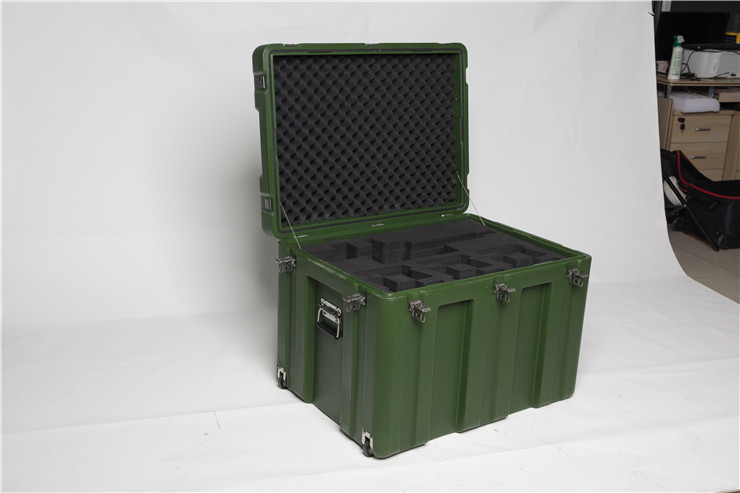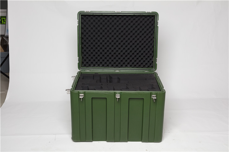 2)采用滚塑工艺一次成型,箱子拥有良好密封性,高韧性、高回弹性和抗压缩变形性,保证箱子没有永久的变形,为物品提供了良好的防护,防水,防潮,防尘, 耐腐蚀,密封性好,易清洗等,有效的保护向内物品不受化学腐蚀和防护作用。同时具有抗臭氧和抗腐蚀的功能,具有优越的耐氧化性能。