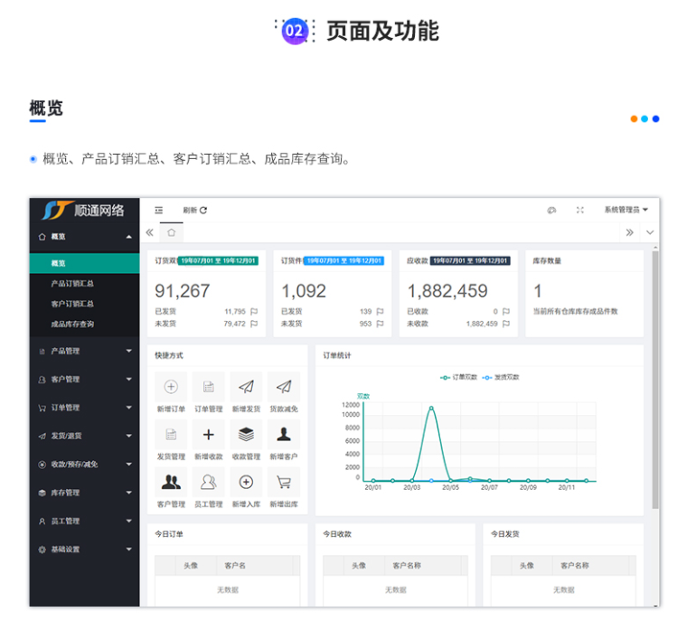 销售管理又分:库存管理、产品管理、客户管理、订单管理、发货及退货管理和员工管理等。