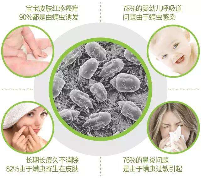 螨虫属体型微小的动物,通常大小约0.5毫米,躯体和足上有许多毛,前端有口器,嗜食皮屑,寿命一般为3个月,但繁殖能力极强,一只螨虫在3月内可变成300只。睡眠研究中心专家介绍,其实人类并不是对螨虫本身,而是对螨虫的尸体、分泌物和排泄物,而这些原大的藏污纳垢地,就是平时睡觉的床垫。权威杂志《内科医学期刊》的新研究成果表明:约有44%的症患者存在不同程度的睡眠问题,如入睡困难、易醒、多梦等。中国总发病人数占中国总人口近三分之一,根据中国流行病学调查显示,这些性疾病患者中,有高达70%的原是螨虫。儿童患者所占比例更高。螨虫引起的性疾病主要有性鼻炎、性结膜炎、性和性皮炎,对患者日常工作及生活都会产生影响,严重者甚至危及生命。