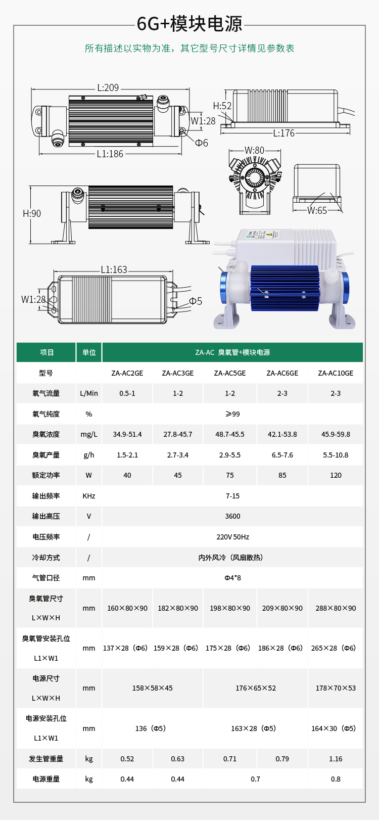 珍澳臭氧发生器臭氧陶瓷管220V模块电源臭氧消毒机