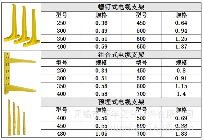 特点:玻璃钢螺钉式电缆支架其比重轻、抗腐蚀、耐老化、密封性能好,安全美观,有着优异的 玻璃钢螺钉式电缆支架是由合成树脂为粘结剂,玻璃纤维及其制品作增强材料而制成的复合材料,具有较高的机械性能和介点性能,并且按照不同模具可以制成各种大小和形状满足用户不同需要。
