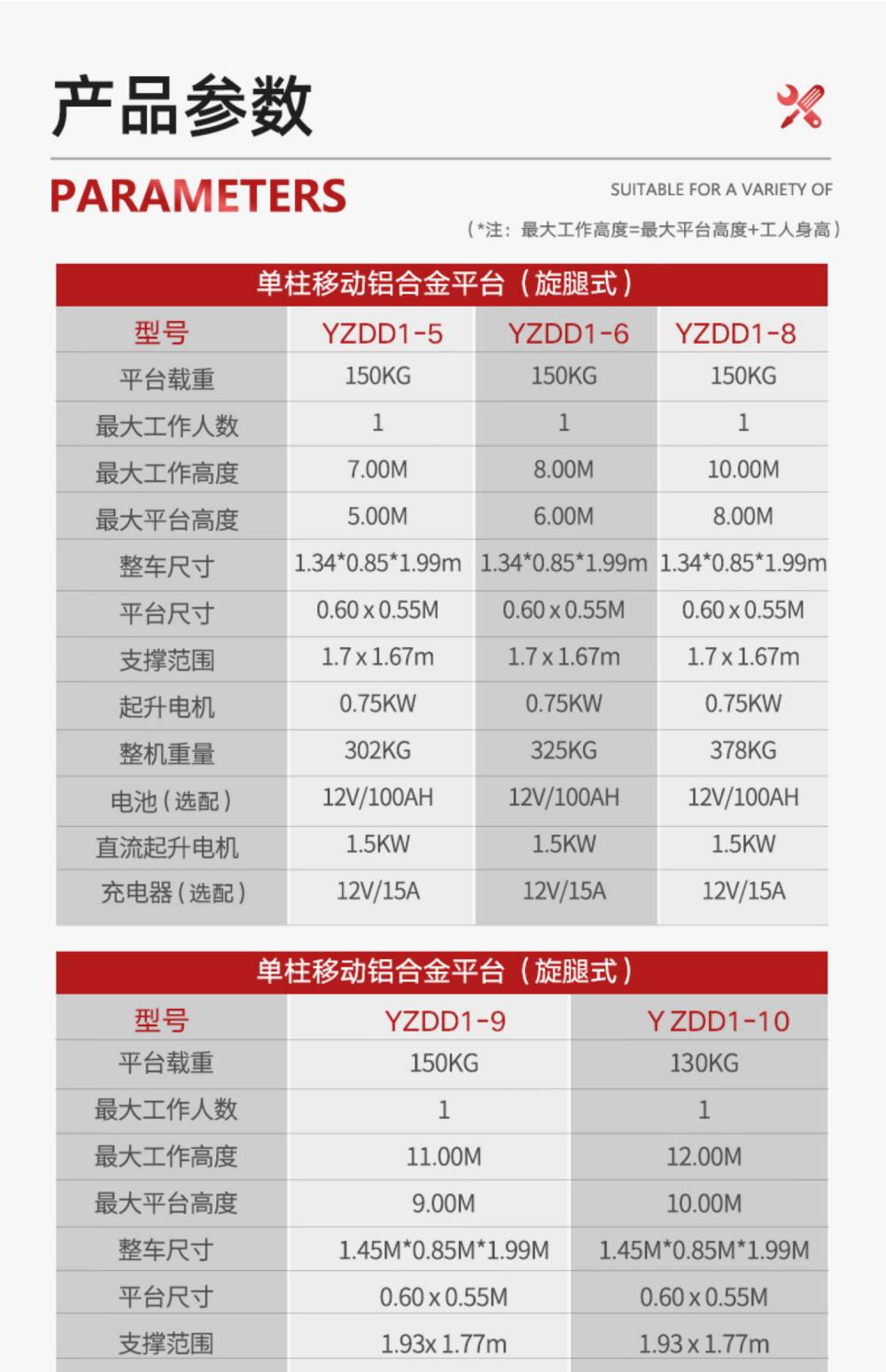 福建扬子升降机DD 铝合金液压移动式高空作业登高车