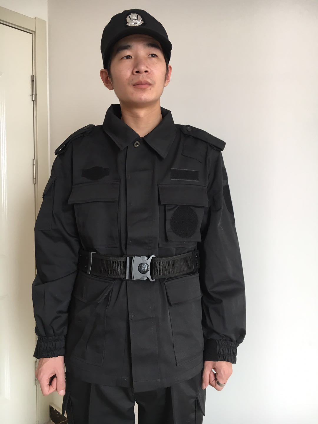 山东临沂伟红服饰有限公司、淄博张店志伟服装厂专业订做保安特勤服,定做各式工作服职业装。订做特勤工作服 秋冬装 男保安衣服 长袖特保服装 黑色耐磨训练服 特勤标志。