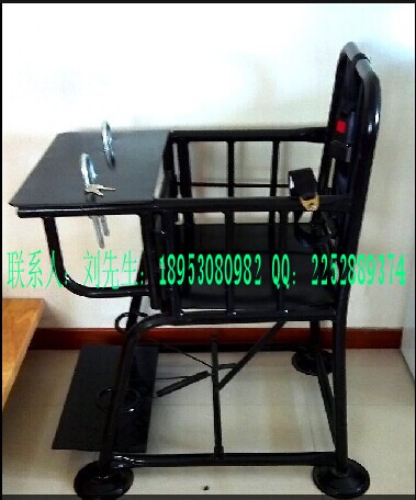 操作:轻轻转动桌面下方的专用钥匙,U型锁环会自然打开,然后将嫌犯手腕放入其中,下按U型锁环至适合其的档位即可;(总重量为75公斤)