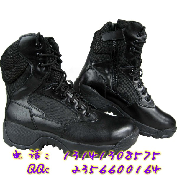 -快系式鞋带,吸汗透气式内衬-带防扭系统 防风沙鞋舌设计-鞋底更坚固、耐磨、防滑-三层减39-45帮面为牛皮+牛津布,拉练易脱设,黑色的光面皮更加好打理,并且增加了侧拉链快脱设计,穿脱军靴变得更加方便、快捷。脚踝有加厚保护。
