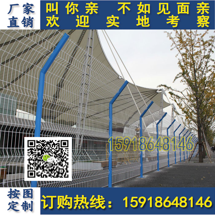 特点:1.立柱采用混凝土浇筑件,工程造价低; 2.强度高 整体稳定性好; 3.彩色塑层具有良好的抗腐蚀和装饰效果; 4.网围界整体和谐 美观; 5.铁路封闭 高速公路护栏 开发区围界 场区围网