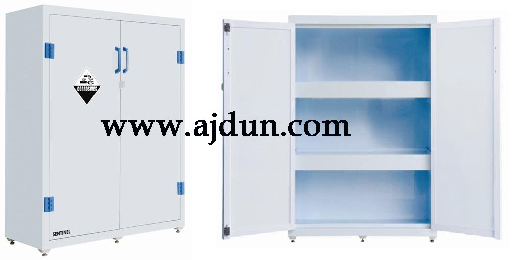 强酸强碱存储柜,特别针对强腐蚀性化学品的存储和渗漏而设计,适用存放具有强腐蚀性的化学品物质(例如硫酸、盐酸、硝酸、KOH、NaOH等化学品物质)。
