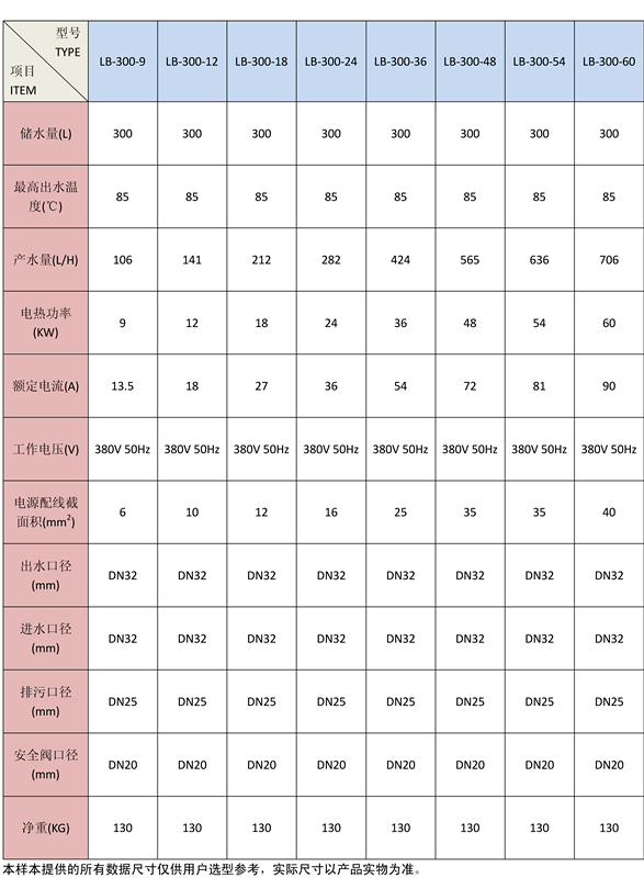 1.容量200升(52加仑)--3000升(800加仑)一体式大型容积式热水器;