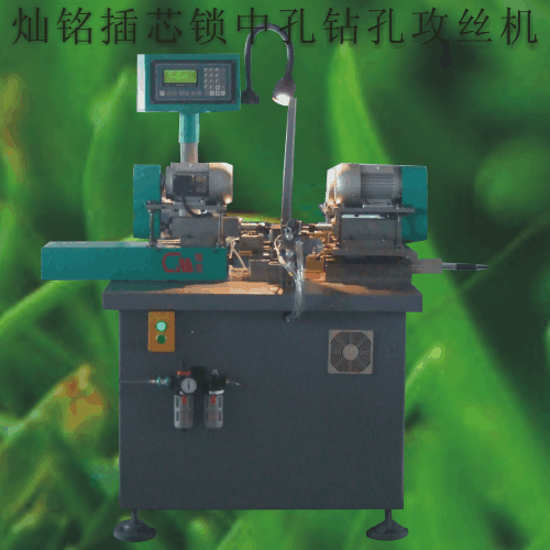 本机床适用于加工插芯锁中间的螺丝孔,采用工业CNC数控系统制度,自动化程度高,钻孔道角,攻丝同时完成,具有高精度,操作简单方便等优点