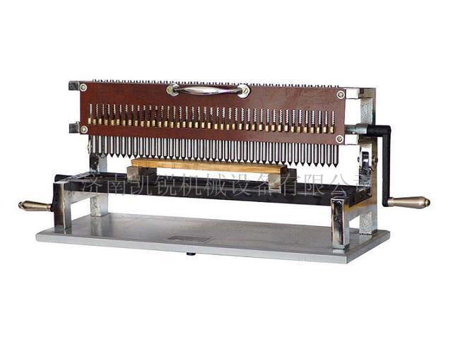 我公司生产的连续式试样标距仪,是根据鞍钢图纸,经过修改制成。生产规格为400型。试样标距仪打点机用于圆钢、板材、钢管、型钢及其它有色金属材料试样打标点记号,供抗拉试样用。该试样标距仪打点机构制造精密,使用方便,工作效率高,打点准确,更便于检查和修理。 试样标距仪打点机技术要求 1)每摇动一周,即可连续打成40个标点。 2)标点距离为10mm,误差不超过±0.15mm,标点针用滚珠轴承钢做成,硬度不低于HRC55度。 使用方便 使用时将试样材料放入试样座槽内,并根据试样材料的长短调节丝母座,根据试样长短和尺寸大小调节试样座,拧开试样座上的固定螺钉,可把试样座前后移动。根据材料的要求,对准直径的中心后用右手摇动,左手抓住拉手,直到标点针尖接触试样材料,并稍微按紧,用右手顺时针摇动手柄一周即可。 济南凯锐备有易损配件,标点针、弹簧,可来电随时购买。凡本试样标距仪打点机不符合技术要求及因质量而损坏机件,本公司负责免费修理和调换。 目前济南凯锐机械设备有限公司主要生产试样标距仪打点机、液压万能试验机、电子万能试验机、压力试验机、拉力试验机、冲击试验机、硬度计、弹簧试验机、摩擦磨损试验机、动平衡试验机、金相检测设备、铸造试验仪器、电线电缆检测仪器、光学仪器、无损检测仪器、橡胶塑料检测仪器、环境试验箱、建筑交通检测仪器、标准测力仪、纺织检测仪器及石油产品检测仪器等。同时可为机械制造、冶金矿山、汽车船舶、石油化工、科研及大专院校、能源、交通、航空航天等行业提供各类试验仪器及技术服务。 热忱欢迎广大用户朋友来电来函咨询洽谈,
