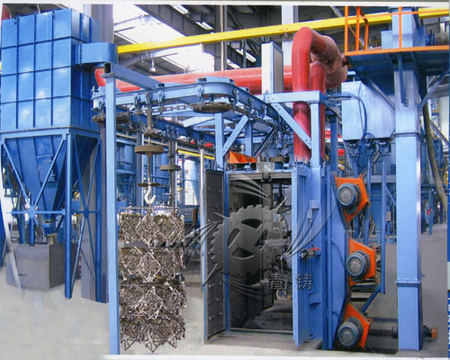 吊钩式抛丸清理机 Q37系列吊钩式抛丸清理机主要用于钢结构件、铸件、铝合金件及其它零件的表面清理和强化。广泛应用于锻造、锻压机械、钢铁等行业。其中Q37系列清理机具有无地坑、双钩不换轨、结构紧凑、生产率高等特点。