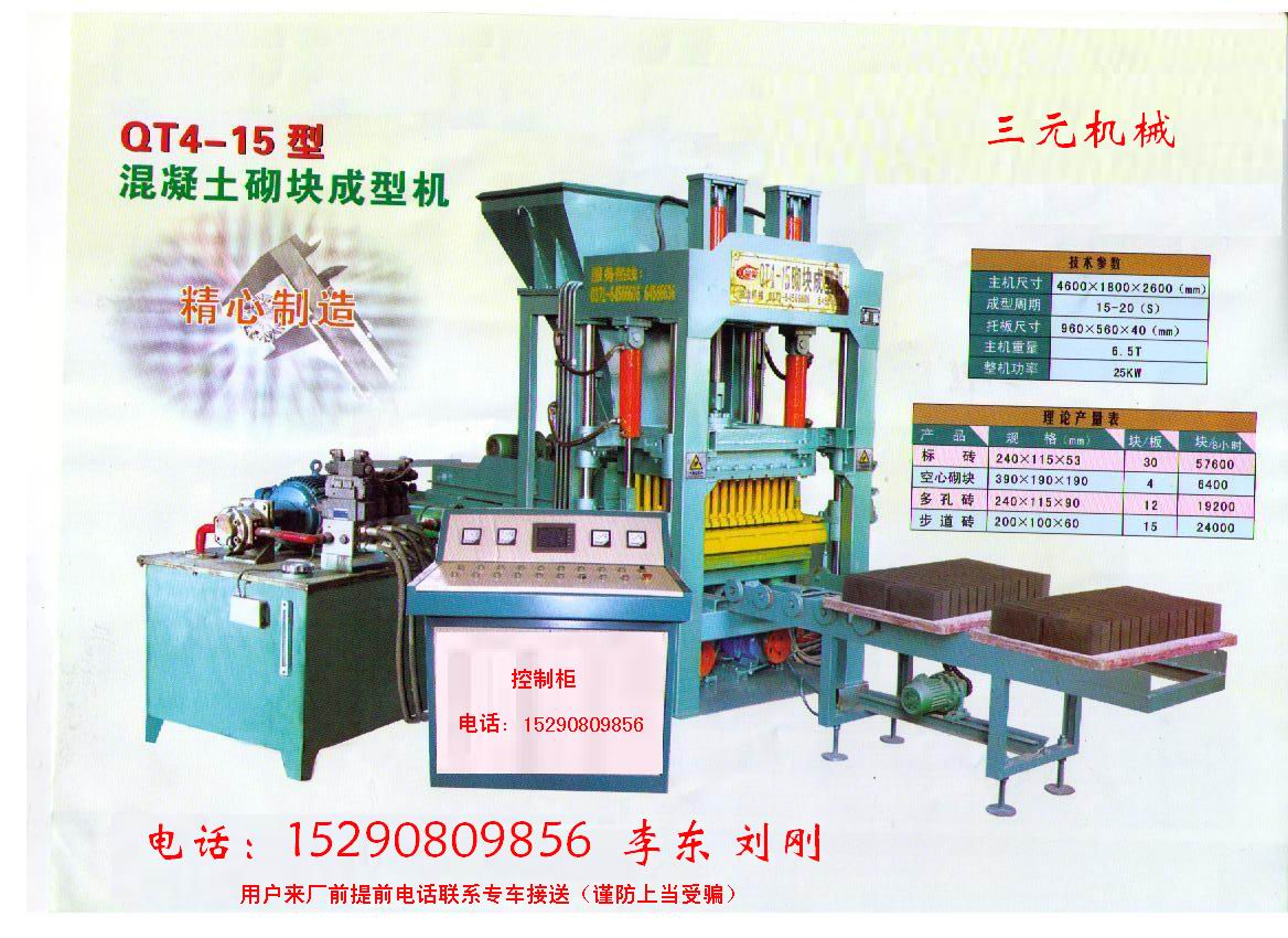 混凝土砌块成型机系列:QT4-15型混凝土砌块成型机 QT4-20混凝土砌块成型机