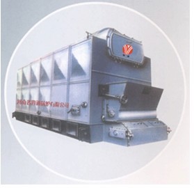 SZL型链条炉排锅炉,是一种卧式三回程水火管混合式锅炉,在锅筒内布置一束螺纹烟管。炉膛左右二侧装有光管水冷墙。采用轻型链条炉排实现机械加煤,配有鼓风机、引风机进行机械通风,并装有刮板式出渣机实现自动出渣。该炉前后拱采用新型的节能技术炉拱。燃料自煤斗落到炉排上,进入炉膛燃烧后,火焰经过后拱折射向上通过本体两侧燃烬室折向转到前烟箱,再由前烟箱折回锅内管束,通过后烟箱进入省煤器,然后由引风机抽引通过烟道至烟囱排向大气。