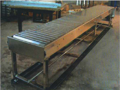 板链输送机适用于形状不规则物品的重载输送。链条选用空心该机与链式或辊筒输送机配合使用可实现转角输送。以标准顶板链为承载面,由马达减速机为动力传动,运行在专用导轨中,根据工艺流程不同,顶板链分为转弯及直线型。