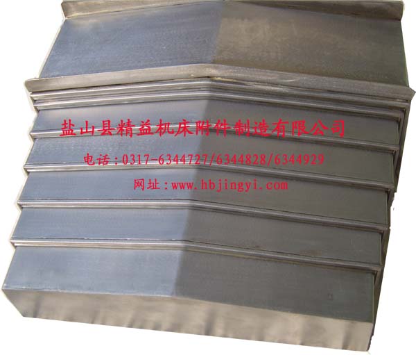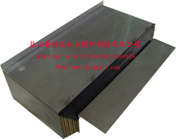 盐山县精益机床附件制造有限公司销售一部(一室)生产的钢板护罩为高品质的2-3mm厚钢板冷压成形而成,根据要求也可以为不锈钢的。特殊的表面磨光会使其另外升值。我们可以为所有的机床种类提供相应的导轨防护类型(水平、垂直、倾斜、横向)。