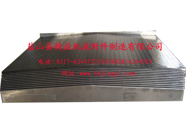 盐山县精益机床附件制造有限公司销售一部(一室)生产的钢板护罩为高品质的2-3mm厚钢板冷压成形而成,根据要求也可以为不锈钢的。特殊的表面磨光会使其另外升值。我们可以为所有的机床种类提供相应的导轨防护类型(水平、垂直、倾斜、横向)。