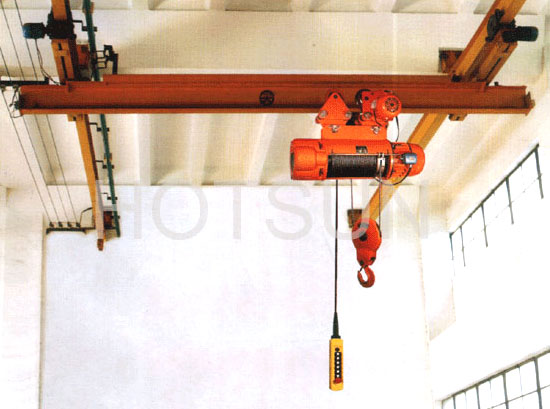 LH型电动葫芦桥式起重机。具有外型尺寸紧凑、建筑净空高度低、自重轻、轮压小等优点。适用于机械加工车间、冶金厂辅助车间、仓库、料场、电站等的转运、装配、检修和装卸作业;它也可以代替普通双梁桥式起重机,用于轻纺工业和食品工业的生产车间。其工作类型为轻级和中级,工作环境温度为-25℃~40℃,禁止在易燃、腐蚀性介质环境中使用。