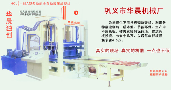 <a href="javascript:void(0);" onclick="HrefJs(this.id)" id="http://www.huachenjixie.com">新型节能砖机hc创建中国和谐城市.新型节能砖机,新型节能砖机设备,尽在巩义市华晨机械厂,新型节能砖机,新型节能砖机设备采用液压振动加压成型,自动上料、自动上板出砖,以水泥、石粉、沙子、粉煤灰、煤渣、陶粒等为原料,生产各种空心砌块,标准砖及不同规格的异型砖,标准砖、盲孔砖成型后直接码垛码顶,码垛高度为12层,节约场地节约托板成本3-5万。砌块成型机使用范围广泛,不仅能生产混凝土砌块,而且还能利用煤矸石、粉煤灰、炉渣、粘土陶粒、石膏等一些工业废渣,生产各种型号的承重、非承重砌块。 砌块成型机特点: 1.可靠性好。机体采用超强型钢及特殊焊接技术制造,广泛采用进口元件,保证机器长期工作的稳定性和可靠性。 2.全程采用PLC智能控制和人机界面对话系统,轻松实现随机信号分析、故障诊断及各种参数设定,保证机器的最佳工作效果。 3.结构独特。采用特殊的下料和破拱机构,通过料箱内装有多排搅拌叉。料箱送至模箱上方时,搅拌叉工作,对模箱进行强制下料,保证下料顺畅和布料均匀,确保制品强度、重量的均匀性。 4.超强的激振力设计,利用电脑控制液压系统的流量、压力,实现垂直同步振动、变频、刹车,确保制品在短期内达到高强度、高密度。 5.一机多用,适用性强,配用不同模具可生产各种形状、规格的墙体砌块、多孔砖、路面砖、护坡砖等。华晨人要开发满足客户需求的新技术,新产品,使客户满意度达到业内领先水平,通过卓越的服务提高我们的境界,成为同行业成功的典范。热线电话:0371-64395191 64310639 请拨打全国免费电话:400-6288-371 QQ:1538471210 传真:0371-64395191 手机:13938265093网址:www.huachenjixie.com www.chenyang99.com 厂址:河南省巩义市孝北滩工业区。</A>