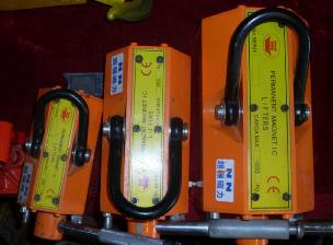 又名磁力吸盘(永磁吸盘),天诚公司多年来一直以生产、销售各种型号磁力吊。天诚磁力吊体型小、吸力大、操作简便、价格低、使用寿命长。设有独特的开关手柄,附有安全纽,用手扳动操作手柄就能吸料或卸料,具备高达额定起重力1 :3的安全系数,能吊起相对应的圆钢、钢板。是一种装卸方便、快捷的磁性夹具。广泛应用于钢铁、机械加工、模具、仓库等搬运吊装过程中对块 状、原柱形导磁性钢铁材料工件的联接,是工厂、码头、仓库、 交通运输等各行业的最理想吊装工具