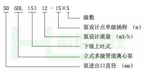 四、GDL立式管道多级泵型号意义