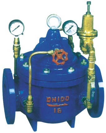 200X减压稳压阀由主阀、导阀、针阀、球阀、微型过滤器和压力表组成水力控制接管系统。使用时,当调定出口压力后,能自动保持稳定出口压力。