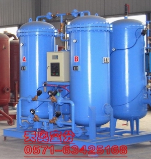 15立方制氮机,富阳天奥空分设备有限公司是一家股份制高新技术企业,是一家集研究、开发、制造制氮机(PSA制氮设备)、工业制氧机(PSA制氧设备)、制氮设备(低温深冷空分氮氧分离)、气体纯化、压缩空气净化等气体设备,还承接各种气体非标设备的设计、制造和技术咨询。制氮机工作原理,制氮机是根据变压吸附原理,采用高品质的碳分子筛作为吸附剂,在一定的压力下,从空气中制取氮气。经过纯化干燥的压缩空气,在吸附器中进行加压吸附、减压脱附。由于空气动力学效应,氧在碳分子筛微孔中扩散速率远大于氮,氧被碳分子筛优先吸附,氮在气相中被富集起来,形成成品氮气。然后经减压至常压,吸附剂脱附所吸附的氧气等杂质,实现再生。一般在系统中设置两个吸附塔,一塔吸附产氮,另一塔脱附再生,通过PLC程序控制器控制气动阀的启闭,使两塔交替循环,以实现连续生产高品质氮气之目的。整套系统由以下部件组成:压缩空气净化组件、空气储罐、氧氮分离装置、氮气缓冲罐。