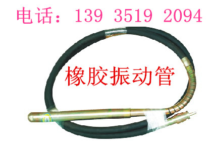 4、配套振动棒橡胶软管为65Mn钢丝管,棒头材质为合金钢4OCr,棒头与软管连接处带合金护簧或加粗,比普通振动棒更加耐用。