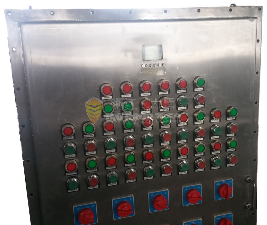 该控制箱由隔爆型主腔,增安体副腔,均采用隔爆型元件(信号灯、电流表、电压表、按钮、开关)配合使用,外紧固件均为不锈钢材质,焊接处严丝合缝,外形美观大方,耐强度腐蚀(视不锈钢材质而定),具有防腐、防水(IP65)、防爆、隔爆型元件结构紧凑,可靠性好,体积小,通断能力强,寿命长等优点。可钢管或电缆布线,电缆布线需配电缆夹紧接头。