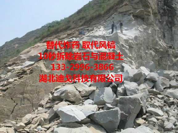 具体操作模式为:1、根据剥离岩层或解体岩石的厚度、体积和断裂层,确定岩石破拆的方向和横截面、凿孔深度、以及选取的劈裂枪的数量(1~8支);2、在横截面上凿深度为40~50公分的孔,为提高作业效率,凿孔的作业可以提前进行;3、插入劈裂枪,依断裂层破拆。