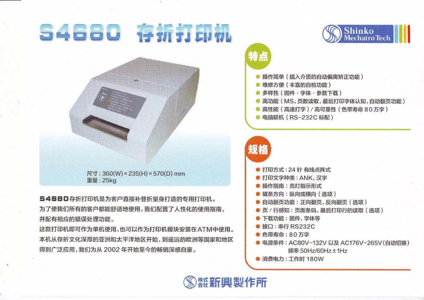 概念: S4680存折打印机证卡客户直接补登折量身打造的专用打印机。