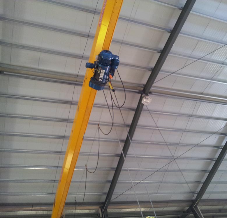 LDA型电动单梁桥式起重机是按标准JB1306-2008设计制造的,其由主梁、端梁装置组成。端梁装置又由运行电动机、减速机、主被动车轮组、橡胶缓冲器等部件组成。