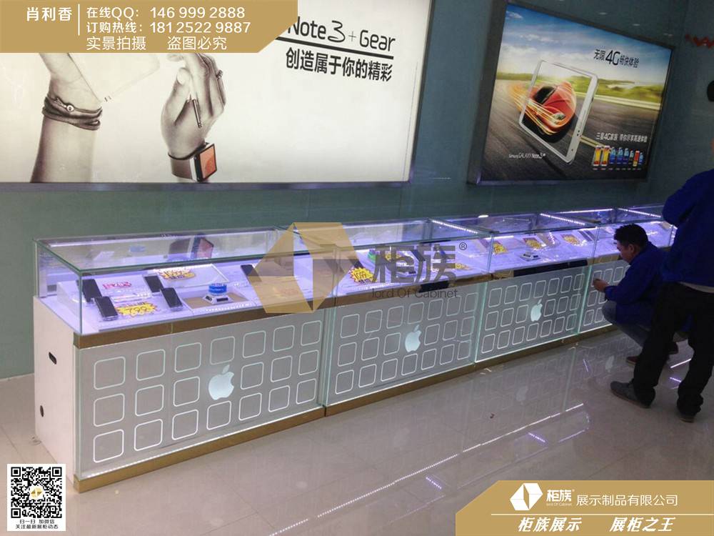 柜族恰是凭仗对手机展现职业实质的深化了解,柜族在手机展现职业范畴不断推陈出新,奠定了职业领导者的位置。这次发布会现场,柜族过电信营动商和手机出产厂商用场景的实在展现,诠释了其作为手机终端展现专家对展现空间、展现美学的了解和使用。在展现“超溥手机灯箱”系列中,机柜、商品、灯箱、灯光相景得彰,光影互动,形成激烈的流动感和改变感。招引了很多手机厂商的驻足,现场其它商品系烈的展现,让我们充沛体会了柜族在手机展现职业中专业的实力。