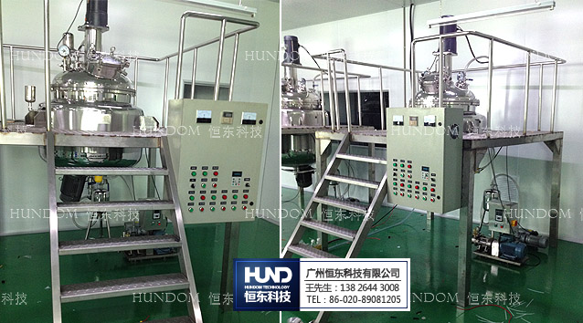 适合于在多个敞口式容器内的简易操作,可在各不同容器上独立完成混合,乳化,均化,粉碎,反应等工艺过程,在每批物料处理的间歇,可以做彻底的清洗工作.每批处理能力从15升到20000升,功率从1.1KW到75KW不等