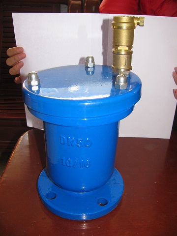 复合式排气阀装设于泵埔出口处或送配水管线中,用以大量排除管道中的集结之空气,以增进水管及抽水机使用效率,且与管内一旦出现负压时,此阀能迅速吸入空气,以保管线因负压所产生损坏。
