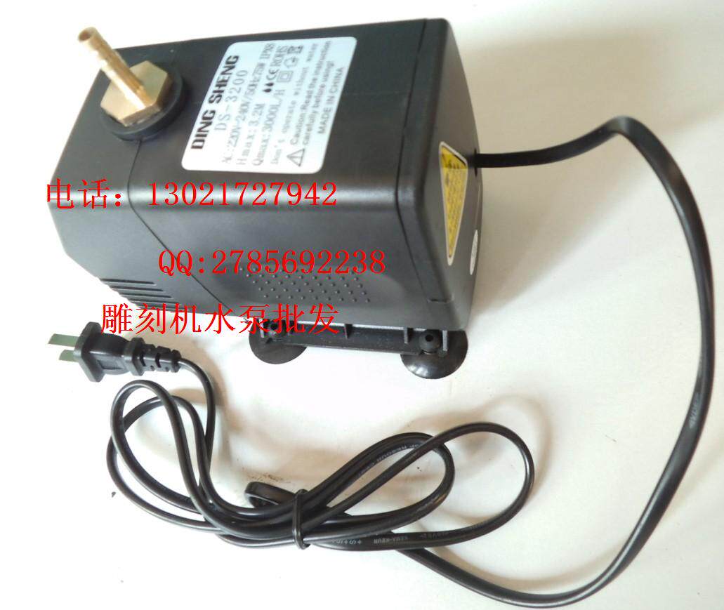 本品用于雕刻机水循环供主轴电机降温用,本品为扬程3.2m潜水泵,工作时需将水泵完全没入水槽中,水槽水位大约为水泵高度的2倍以上即可!