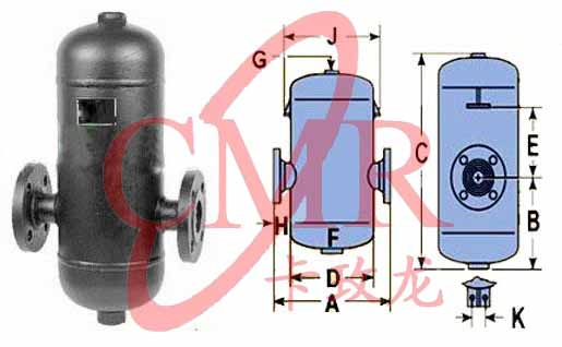 工作原理:大量含水的蒸汽进入AS7汽水分离器,并在其中以离心向下倾斜式运动。夹带的水份由于速度的降低而被分离出来。被分离出来的液体流入下部经疏水阀排出体外,干燥清洁的蒸汽从分离器出口排出。