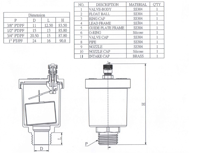 6.较粘稠或有粘性的工作介质会附着在不锈钢自动排气阀的浮筒或者浮球上,凝固或者干燥在其表面会影响浮筒或者浮球的正常上下运动,竟而影响排气阀的排气和密封。