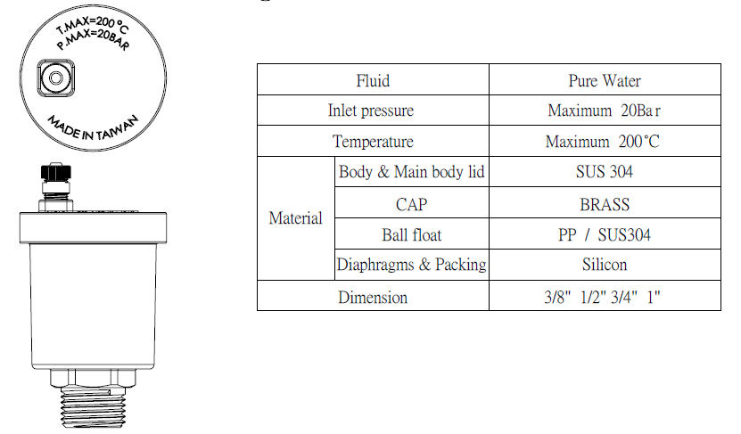台湾进口不锈钢自动排气阀广泛应用于水处理,蒸汽系统,模温机系统等需要耐高温耐腐蚀场合,排出系统多余气体,保证系统运行通畅,区别于一般的不锈钢自动排气阀,此排气阀阀体为全不锈钢材质,浮筒也可以选用不锈钢材质,耐温高度200度,耐压20bar,满足绝大部分系统使用工况.武汉远明丰科技有限公司代理台湾AEV不锈钢自动排气阀,价格实在,一年包换,欢迎选购.