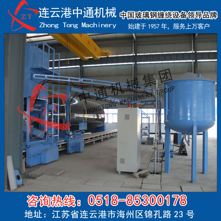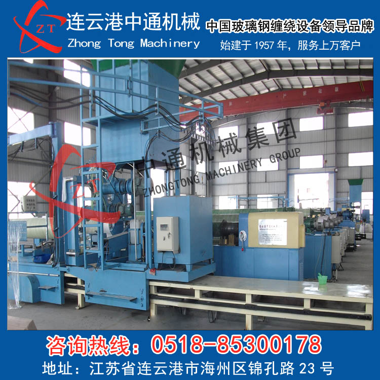 我公司生产的玻璃钢管道生产线:微机砂缠绕机可生产各种形式的玻璃钢工业管道、夹砂管道。这种生产线具有以下特点: