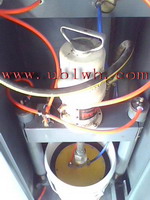 润滑泵从贮油器吸入润滑脂,经过液压换向阀由供油管输送到分配器,进入分配器后加压于先导活塞。先导活塞下腔与供油管连通,经换向阀向贮油器开放。先导活塞在供油压力的作用下,移动到下端,使主活塞上腔连通,主活塞下腔与出油口连通,供送的润滑脂进入主活塞上腔,推动主活塞下移,将其下腔的润滑脂经给油管压送到润滑点。给油量由主活塞的直径和行程确定。切换供油管,分配器活塞按相同的顺序反向进行前述动作,分配器得以循环工作。