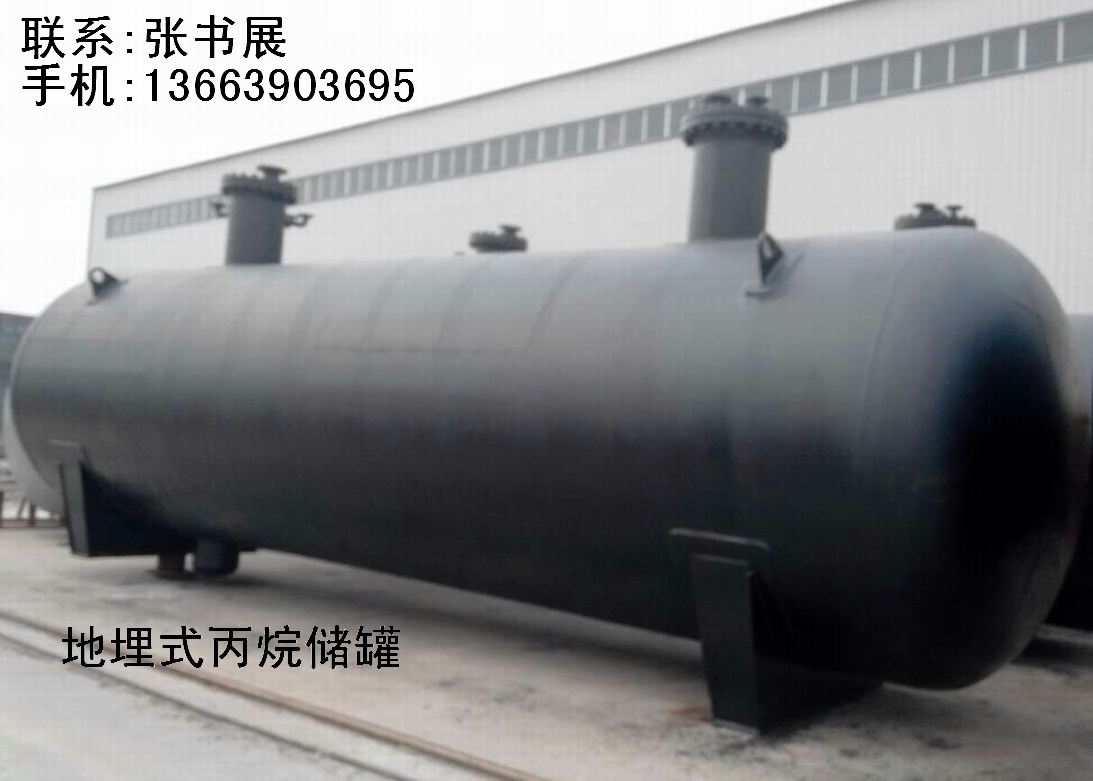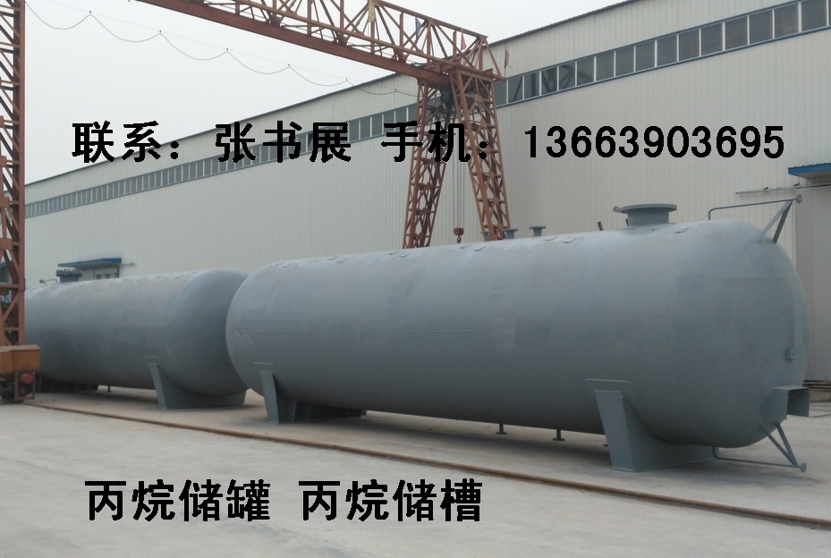 丙烷储罐型号有3m3、5m3、10m3、15m3、20m3、25m3、30m3、40m3、50m3、80m3、100m3、120m3、150m3、200m3等规格。充装介质:液化石油气(丙烷);设计压力1.77Mpa、设计温度50℃,充装系数:0.42t/m3,腐蚀裕量:1mm;材料为Q345R压力容器专用钢板,本设备经高温退火热处理。该产品严格按照GB150《钢制压力器》、《压力容器安全技术监察规程》进行设计、制造、检验与验收。