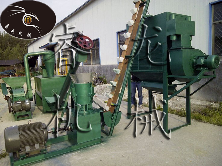 且两端与模盘内、外圈线速一致,饲料颗粒机主要由喂料、搅拌、制粒、传动及润滑系统等组成。曲阜市睿龙机械厂专家指出,饲料颗粒机工作过程要求含水量不大于15%的配合粉料,从料斗进入喂料绞龙,通过调节无级调速电机转速,获得合适的物料流量,然后进入搅拌器,通过搅拌杆搅动与蒸汽混合进行调质,如果需要添加糖蜜或油脂,也从搅拌筒加入与蒸汽一起调质,一般草粉秸秆含量在40%以上就要用平模饲料颗粒机,油脂添加量一般不超过3%,否则难于成形,经调质后配合粉料温度可达64~85℃,湿度达14~l 6%。然后再通过斜槽经过可选择的吸铁装置除去混在粉料中铁杂质,最后进入压制室进行制粒。这是与同类压缩成型设备的重大区别。碳钢加大型强化喂料调质器,采用变频调速控制,确保颗粒料高品质。