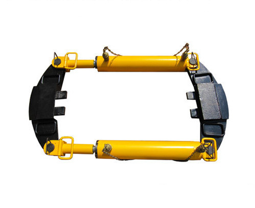 整机在被拉钢轨上安装后,打紧斜铁,拉伸油缸由内燃液压泵站直接驱动,随着拉力增加,钢轨被斜铁座越夹越紧,从而夹持着钢轨向拉伸方向移动。拉轨达到预定拉伸长度结束后,可利用泵站换向供油,活塞杆反方向运动,自动顶松斜铁座,另一斜铁座可用大锤敲打机座,直至全部松开,便可取下斜铁座。