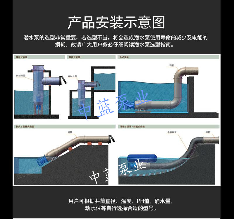 天津中蓝泵业有限责任公司主要是以井用潜水泵、潜水排污泵、潜水轴流混流泵、不锈钢潜水泵等泵类产品的研发与制造为主,公司聘请了国内著名的水泵设计专家作为我们的设计人员。我们拥有自己的安装服务团队,在日常与用户的沟通交流中,如果发现市场有了对某种产品的需求,我们就会着手开发相关的泵类产品并尽快投放市场,来满足各类用于的需求。