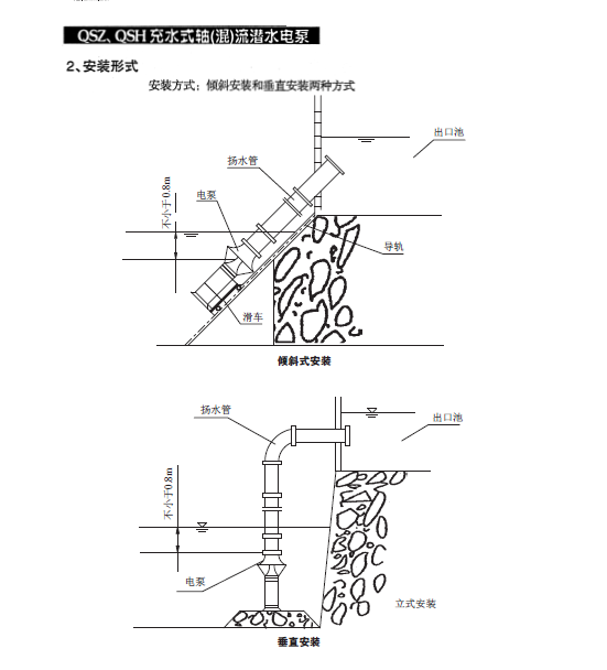 5、安装简单方便、方式多样,可以选择井筒悬挂式、井筒落地式、水池悬挂式、水池落地式、沿岸倾斜固定式等。