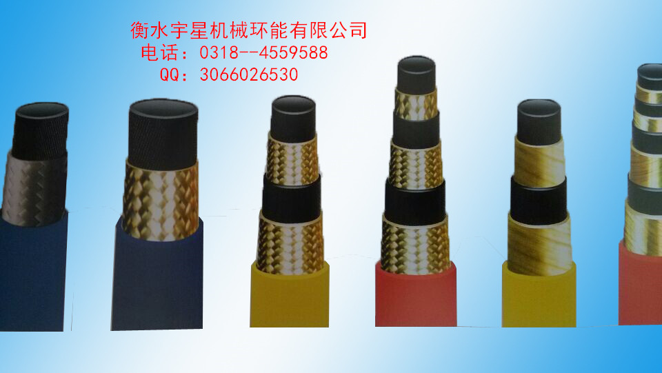 产品结构:主要由耐液体的合成橡胶内胶层、中胶层、Ⅰ、Ⅱ、Ⅲ层钢丝编织层、耐天候的合成橡胶外胶层组成,内胶层具有使输送介质承受压力,保护钢丝不受侵蚀的作用,外胶层保护钢丝不受损伤,钢丝层是骨架材料,起增强作用。